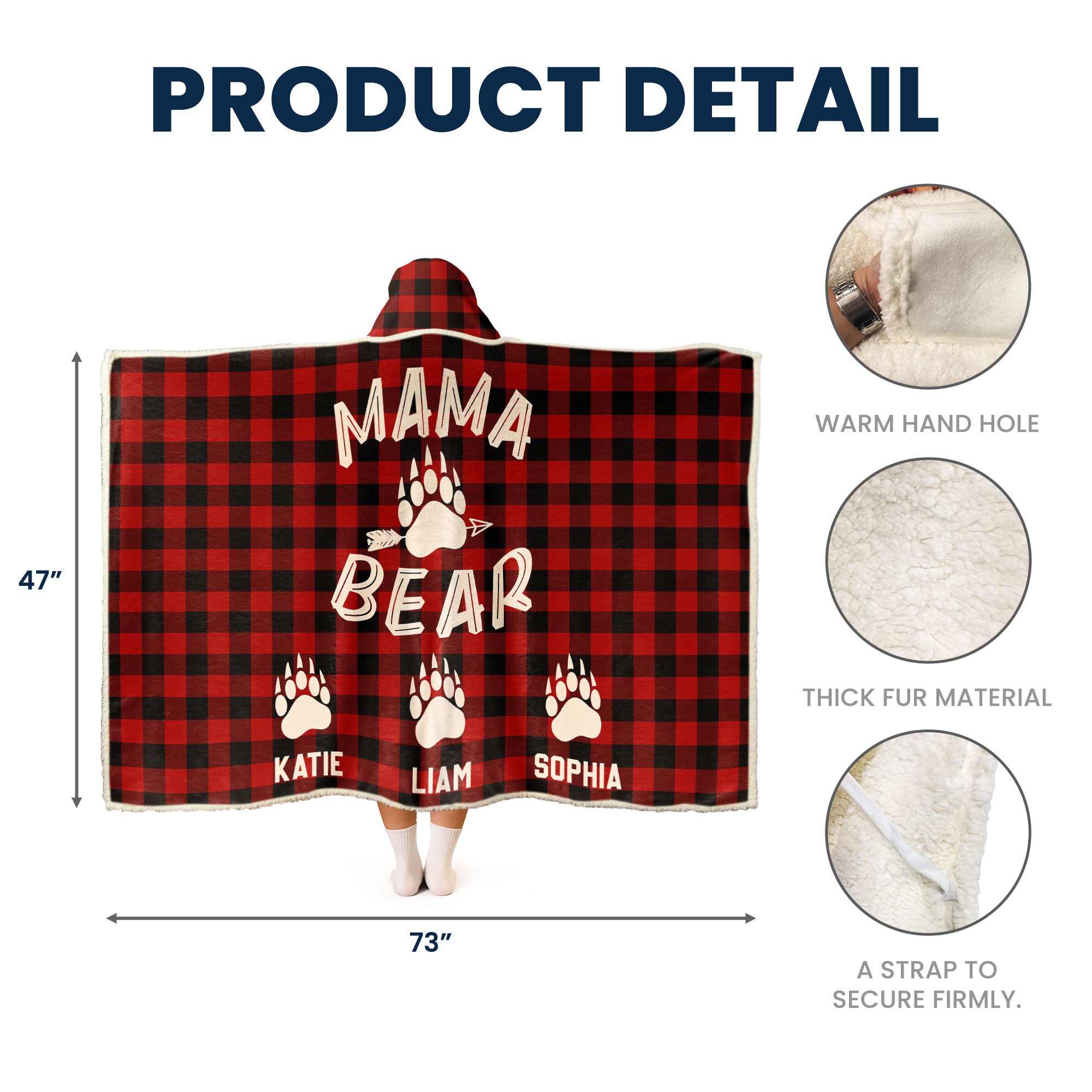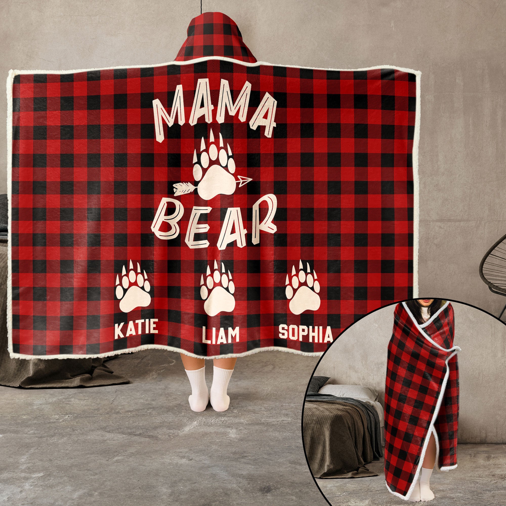 Mama Bear Custom Name – Personalized Wearable Blanket Hoodie