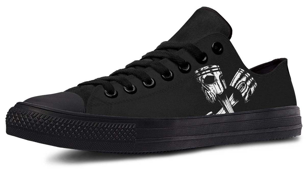Skull Engine Motor Black Low-Top Sneakers – Edgy Biker Style